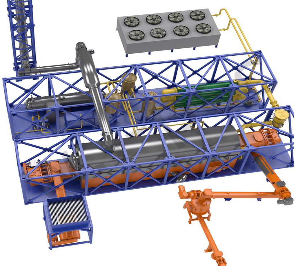 Designed as multiple modular skids, Chemcycle’s waste plastic recovery unit boasts a processing capacity of 25 tons per day. It produces process gas, synthetic crude oil, and residue coal, all while operating at an efficient temperature of 420°C and less than 1 bar pressure. The synthetic crude oil, notable for its very low sulfur content, serves as a valuable product that can power generators or be sold to refineries. The residue coal, with its high heating value, presents an excellent substitute for low sulfur coal.