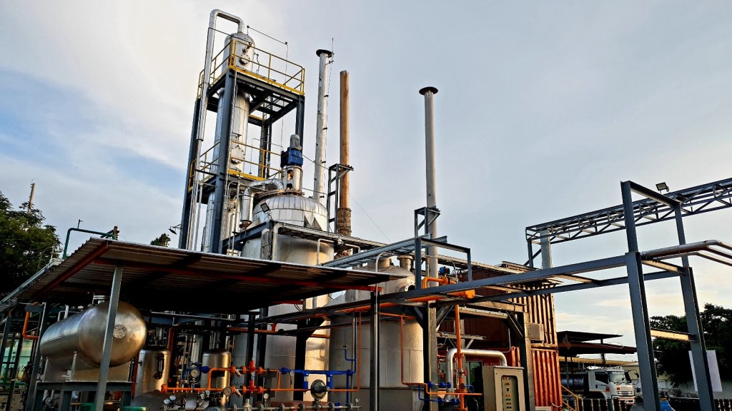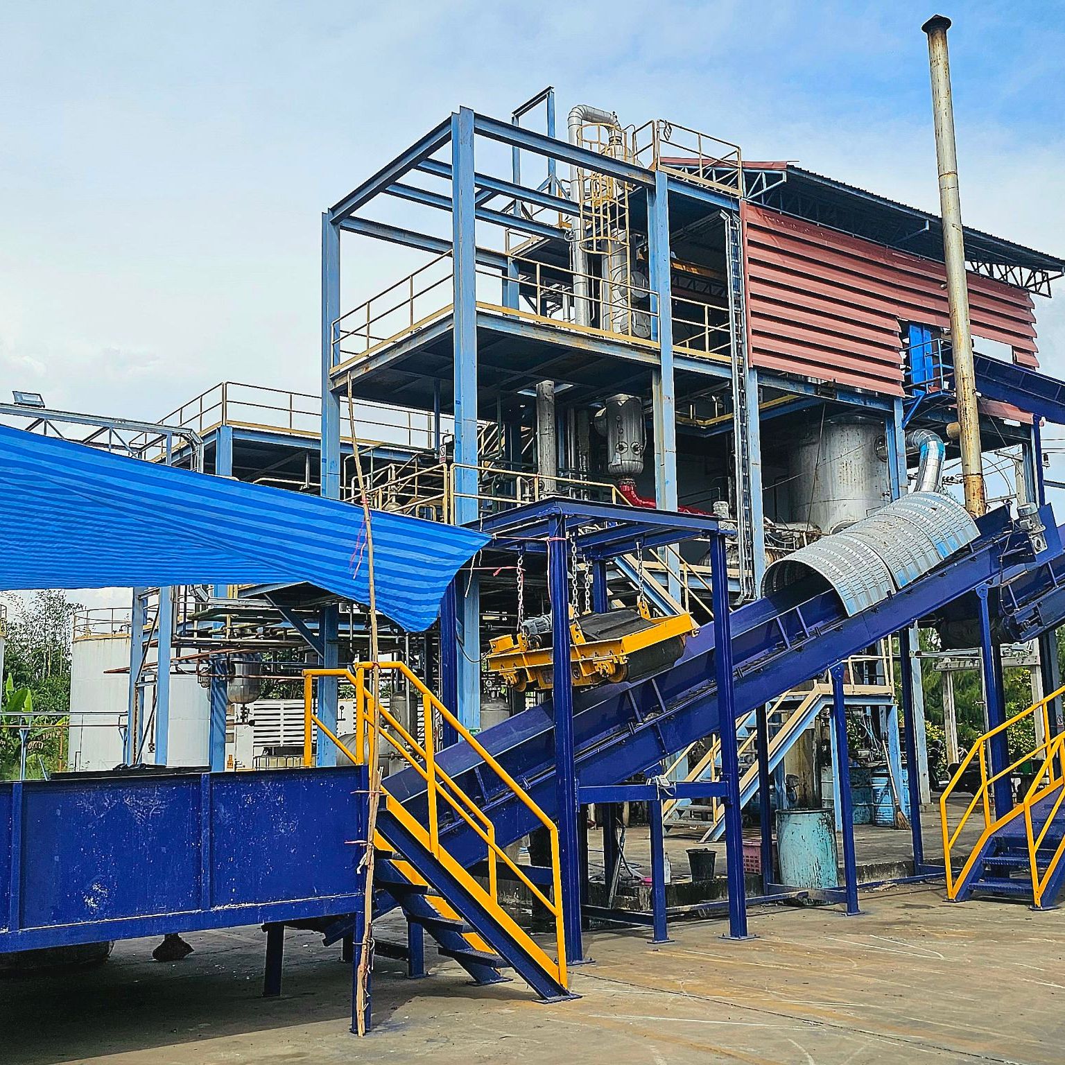 Chemcycle’s Pyrolysis System, developed in partnership with ECI Group Thailand, represents a cutting-edge solution in plastic waste management. This system harnesses advanced thermal decomposition technology to convert plastic waste into synthetic crude oil, operating in an oxygen-free environment to ensure efficient breakdown of polymeric materials into smaller hydrocarbons. Engineered with precision, it features a high-temperature pyrolysis reactor, an effective gas management setup for syngas recovery, and a streamlined process for oil collection and solid residue management.